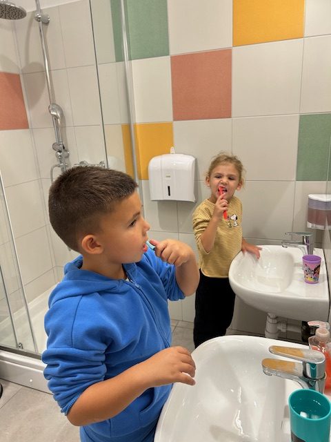 U našoj vrtićkoj skupini ovih smo dana provodili zdravstveno-edukativnu aktivnost na temu dentalne higijene, u suradnji sa zdravstvenom voditeljicom. Cilj aktivnosti bio je potaknuti djecu da na zabavan i razumljiv način nauče zašto je važno redovito prati zube, kako se pravilno četkaju i kako brinemo o zdravlju naših desni.